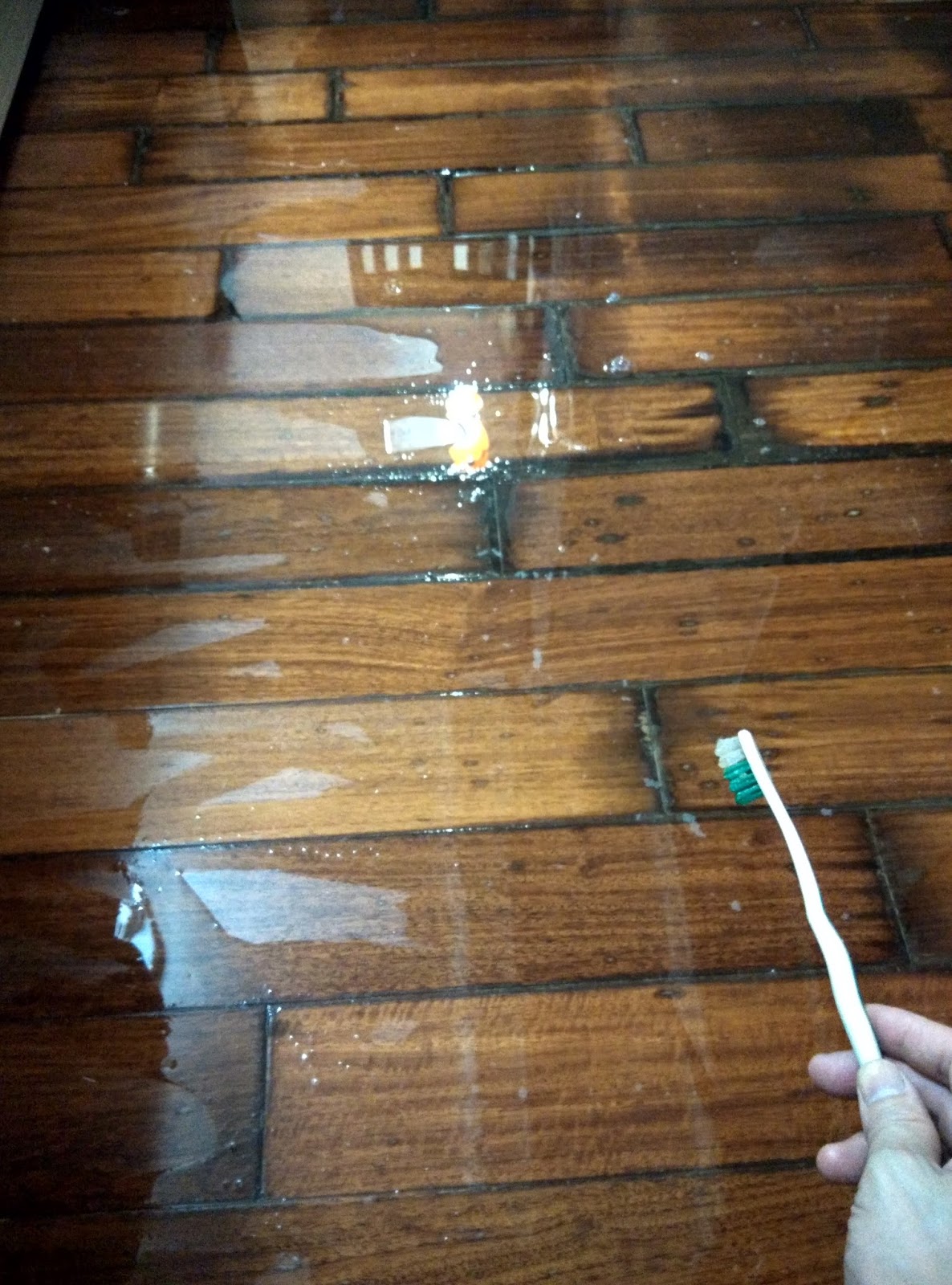 第1次用稀釋好的四級氨再加上不要的小牙刷來刷地板小溝溝。