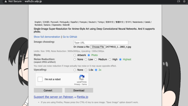 waifu2x圖像縮放和圖像降噪程式,支援處理普通照片