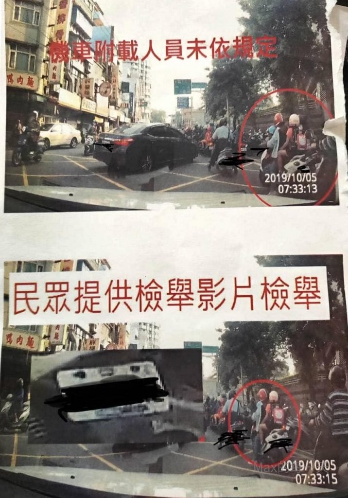 照片的右側是清華大學南大分校的門口,在南大路往新竹國小的路上,檢舉的熱心民眾是使用行車記錄器的影片檢舉。