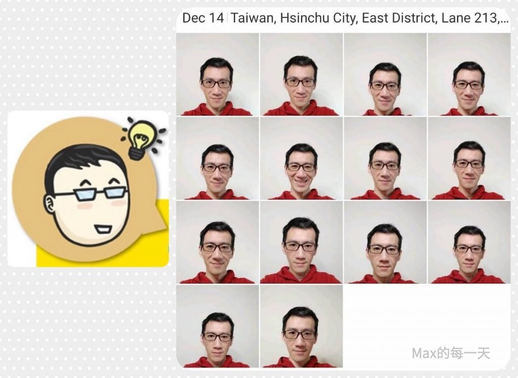 最近在學些影像的處理,我想練習製作出下圖裡左邊的效果,由於自己畫畫功力不行,那想說就來自拍好了。結果我拍了很多照片,原來平視/抑角(仰攝)/俯視拍出來的感覺差很多,有笑、沒笑和放鬆拍出來的照片傳遞出的感覺差很大!