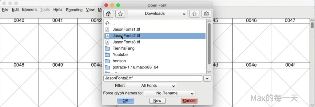 這篇文章在解決字型的缺字問題。Max示範如何透過 FontForge 幫有漏字的字型補缺字,如果你的電腦是Windows / macOS 或 Linux 也都可以使用,因為用到的工具都跨平台。