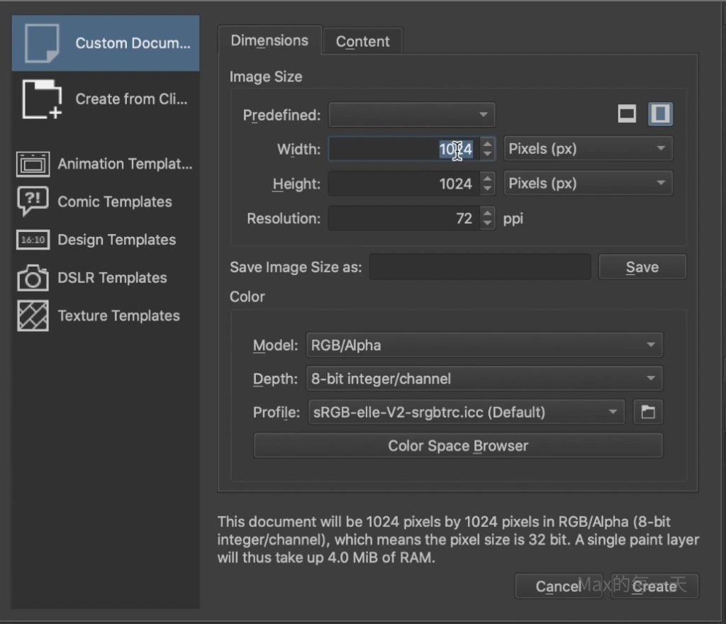 透過繪圖軟體製作我們的字型圖片,大小設定 1024 x 1024 px: