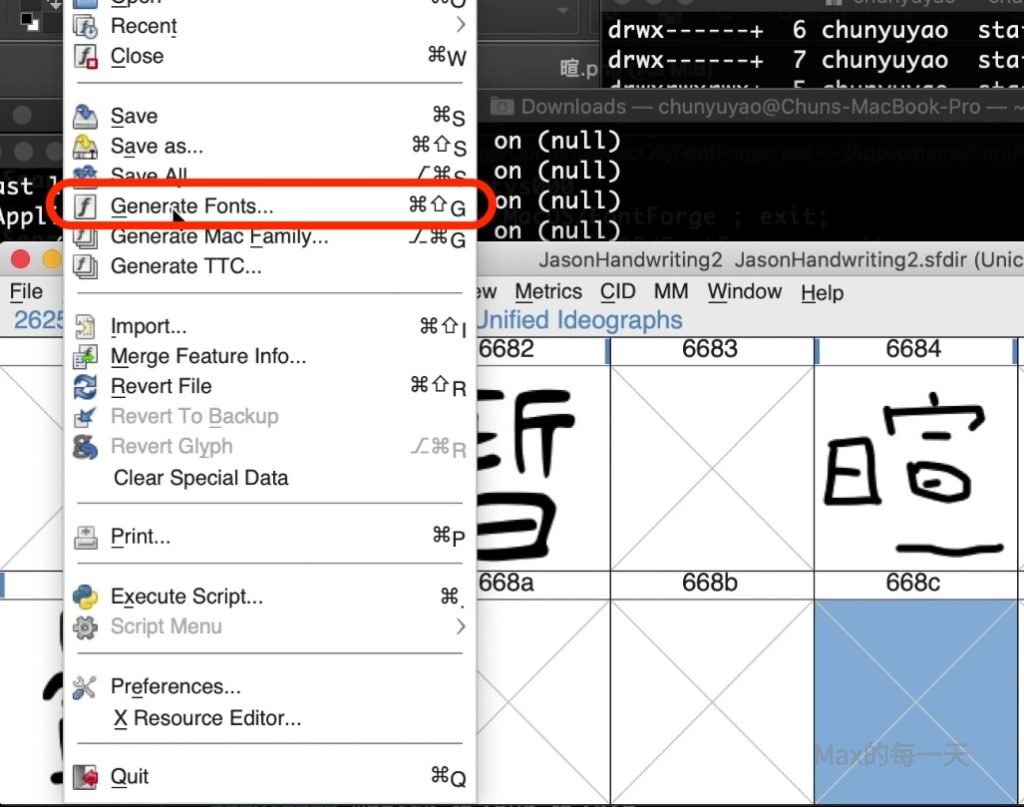 最後在 “File” – “Generate Fonts”,就可以取得修改後的字型: