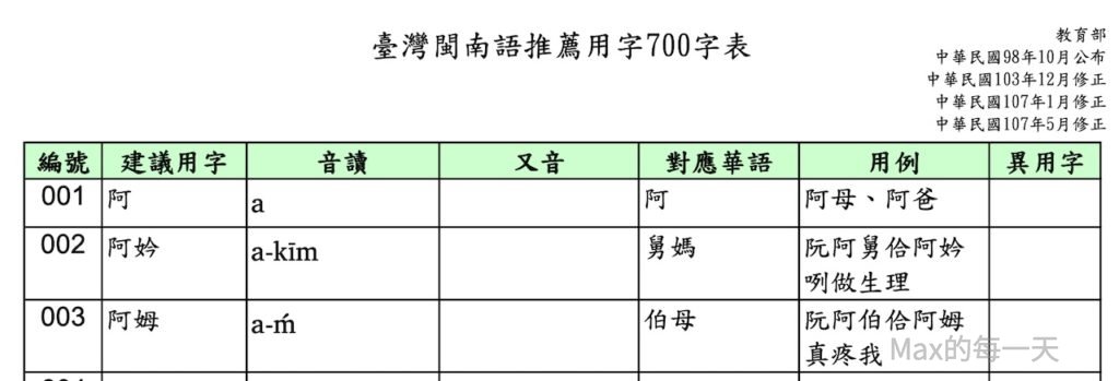 Max最近在幫一個免費的「內海字體」補缺字時,想補一些台語常用字到字型裡,順便來學一些教育部推薦的台語用字。