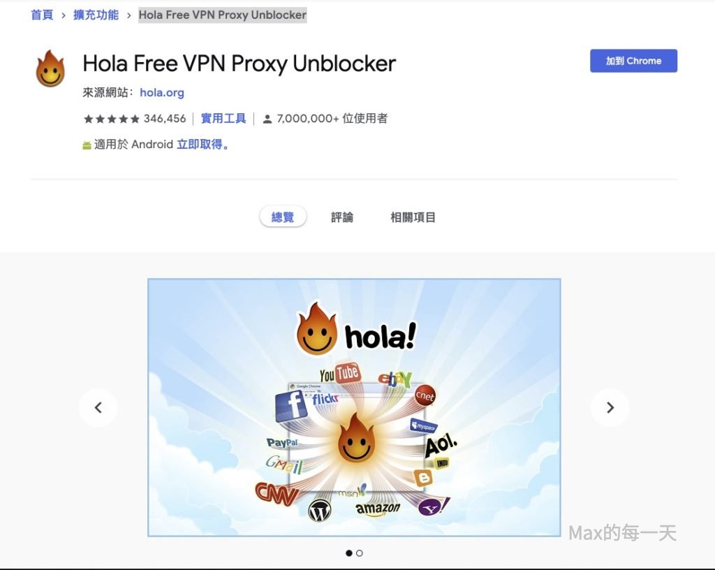 https://chrome.google.com/webstore/detail/hola-free-vpn-proxy-unblo/gkojfkhlekighikafcpjkiklfbnlmeio?hl=zh-TW