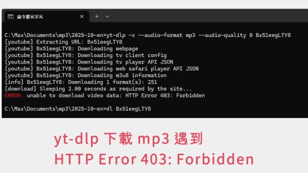 yt-dlp 下載 mp3 遇到 HTTP Error 403: Forbidden 解法