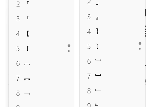 • 在「肉」、「糸」、「女」、「辶」、「食」的筆畫不同,CJK JP 「肉字旁部首」變成「月」。