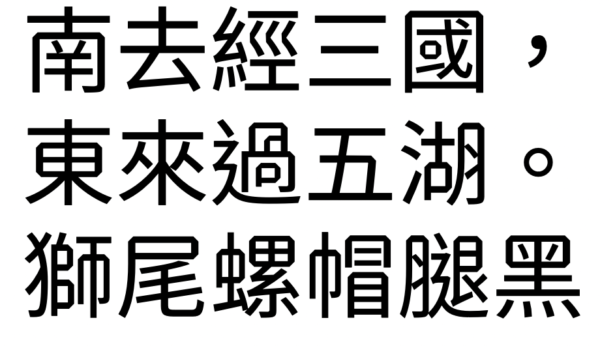 獅尾三腿黑體的特色是,「一」字的開頭和結尾筆觸由平頭換成開花式的三個三角形。