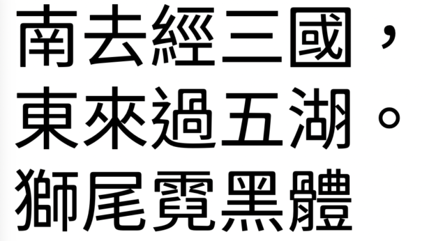 獅尾福腿黑體的特色是,「一」字的開頭和結尾筆觸由平頭增加一個小小的三角形。