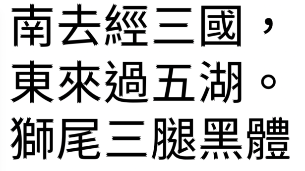 獅尾麥克黑體的特色是:筆觸略圓,起頭與收尾是斜線。