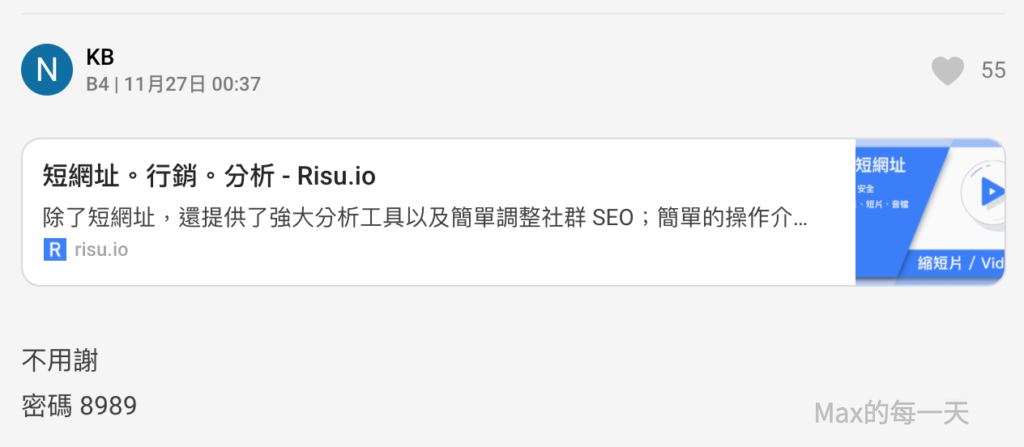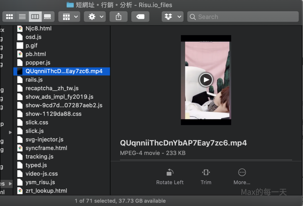 由於 risu.io 會擋滑鼠右鍵,也會檢查是否正在使用 DevTools(開發者工具),所以要使用 inspect(檢測元素) 的方式取得影片比較難一點點,可以使用 Firefox 瀏覽器,先播放一下影片後,再點瀏覽器App選單裡的 File(檔案) – 另存新檔(Save As..) 就可以取得實際影片了(233KB),另一個完整版 144秒是 2.9MB: