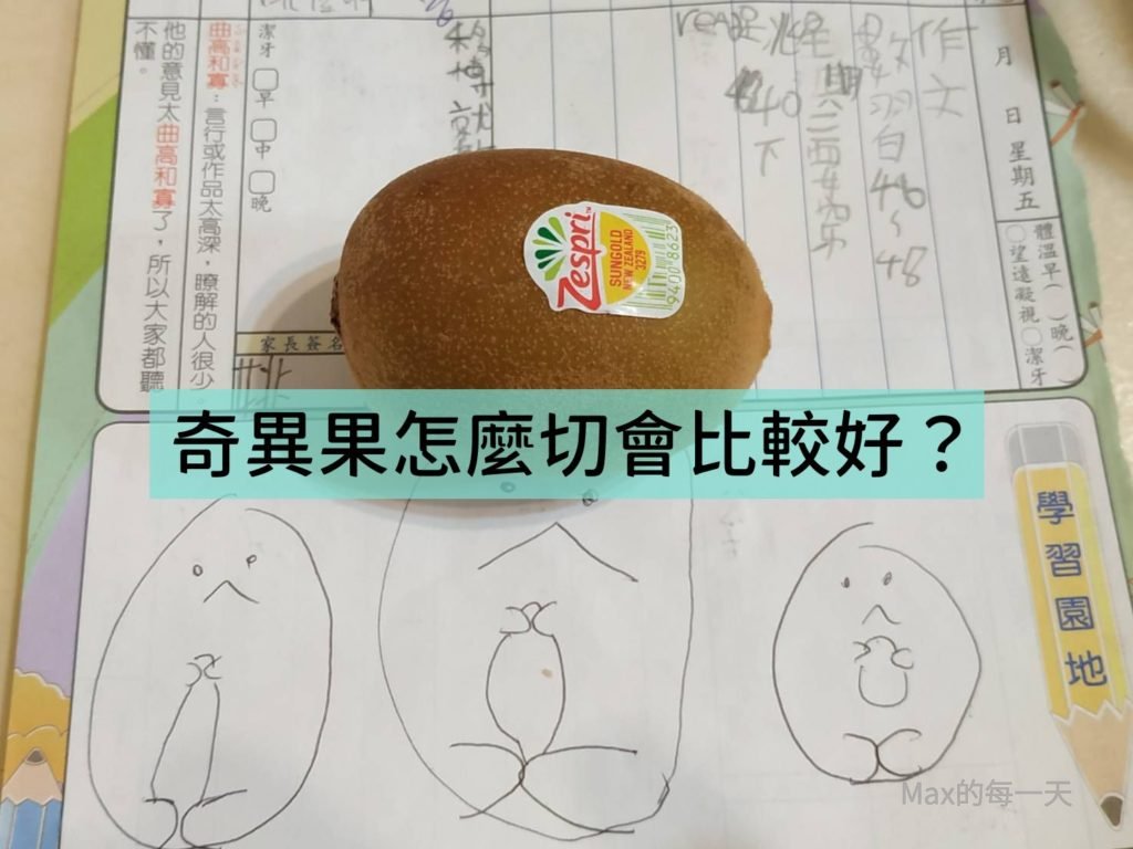在大賣場買了很多金色的奇異果,妹妹很喜歡吃,我給妹妹自己拿刀子去切奇異果,妹妹先把奇異果從中間對切,接著可能是怕奇異果會亂跑,他把橫切面朝下,再對切,由於奇異果的梗太硬,一切下去,奇異果的果肉都被壓的爛爛的。