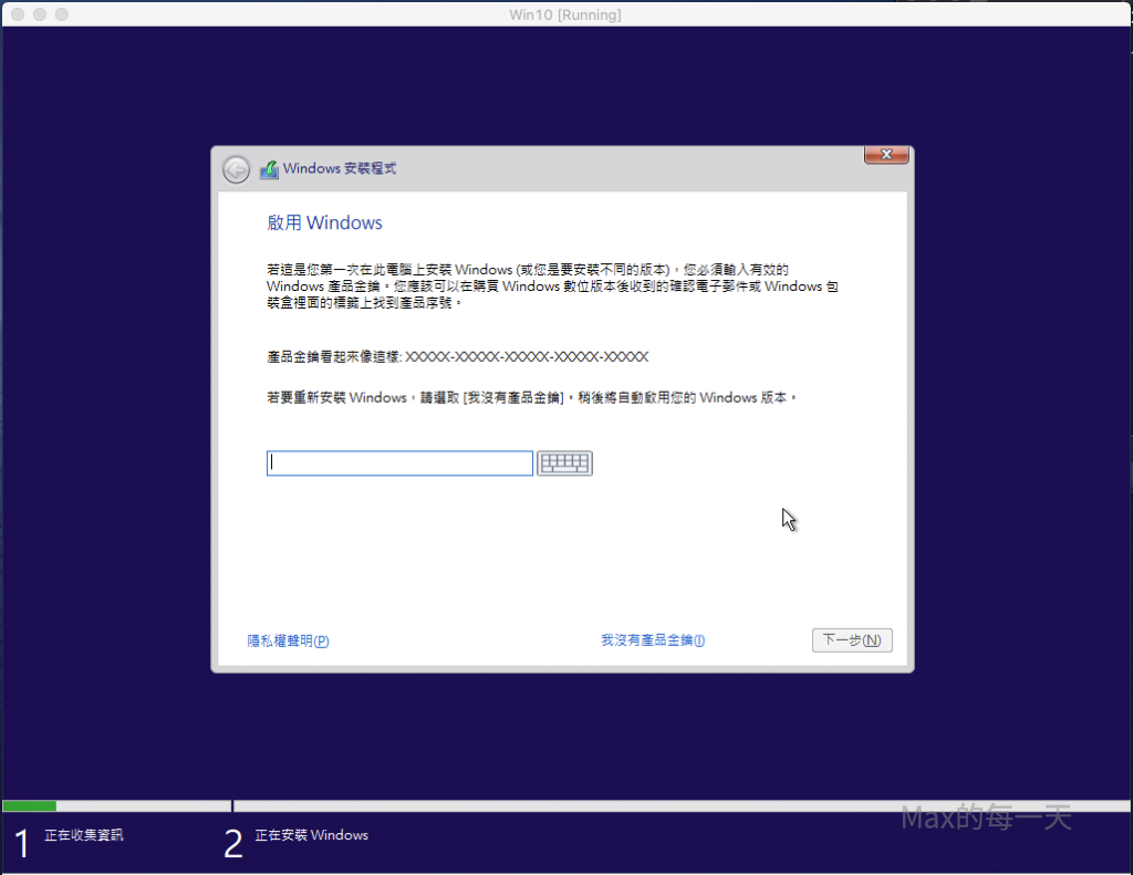- 如果您是一次安裝Win 10作業系統,將需要您的 Windows 產品金鑰 (xxxxx-xxxxx-xxxxx-xxxxx-xxxxx)。如需產品金鑰和何時需要它們的詳細資訊,請瀏覽常見問題集頁面。