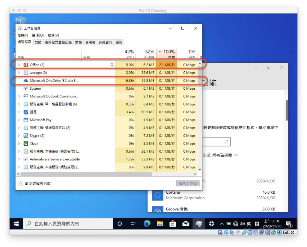 佔用系統磁碟I/O資源較多,也可以看到 OneDrive。