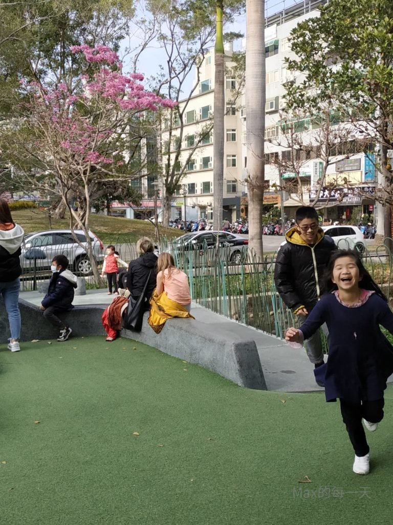 在公園裡遇到一個金髮外國媽媽,帶了三個金髮小女生。小女生們穿搭很漂亮,外型很亮眼,他們是唯一穿短袖在公園裡跑跑跳跳的小朋友,運動結束回家時外國媽媽從包包裡拿出飲料給小朋友們補充水分,他們離開公園時都有穿上自己的運動外套。