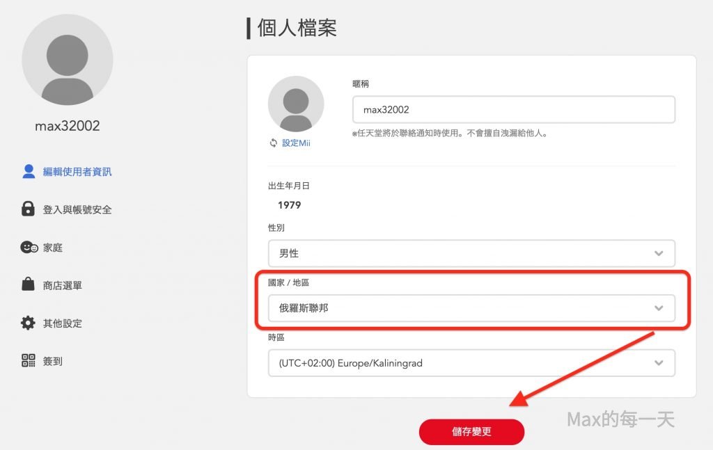 在網站上設好後,由於我們要去俄羅斯聯邦,所以Switch主機上的地區請切換為:「歐洲」,確定後主機會自動重新開機就可以進入到俄羅斯eShop。