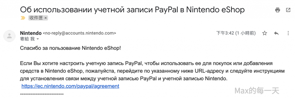 點下後,Nintendo 又寄了封俄文的eMail 來: