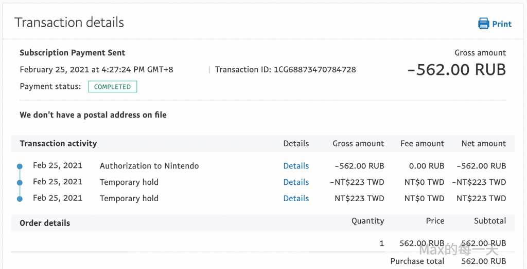 另外買的以 562 RUB 買「超級轟炸超人R」,在 PayPal 換成台幣支付會是付 NT$223 TWD, 而不是遊戲箱子App的裡較優匯款的 NT$221 TWD, 只差了 $2塊錢。
