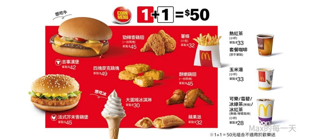 儘管這次的暖春獨享優惠券並無「大薯買一送一」優惠,但持續觀察市場情勢及消費者喜好後,仍推出全新的「六塊麥克雞塊買一送一」的超值選擇。