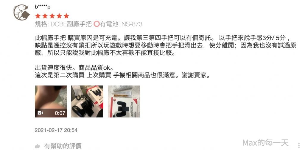 Max在蝦皮購物遇到一個「超優質」的賣Switch 副廠手把支架(手把座)的賣家,他居然讚美我是神人,呵呵。