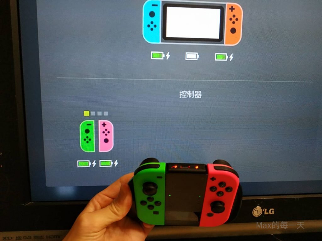 上圖可以看到出來,使用中的Joy-Con 也在充電中,可以使用Type-C 的手機充電線來幫支架還有Joy-Con手把充電。