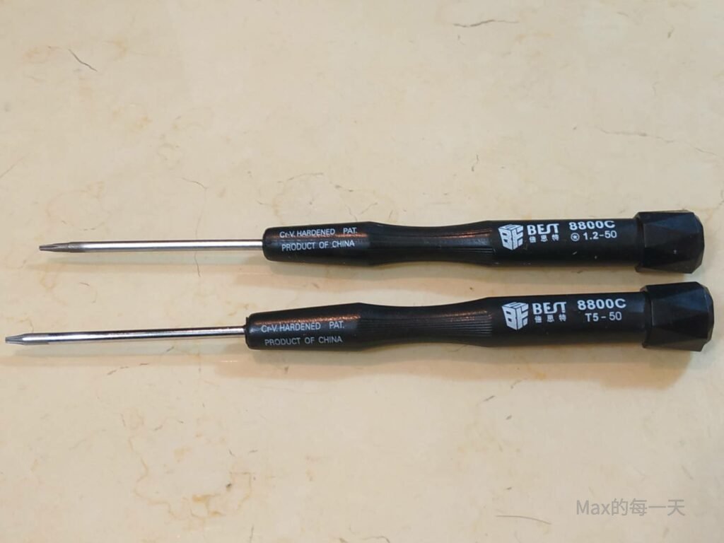 - 五星★1.2mm螺絲刀,六角形T5規格 1.4mm 的螺絲刀,大約各$70元,合計$140元。