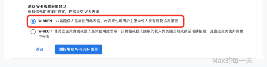 上面的畫面按下「提交」後就顯示 W-8BEN 表單狀態為:「已核准」,這樣就大功告成了。