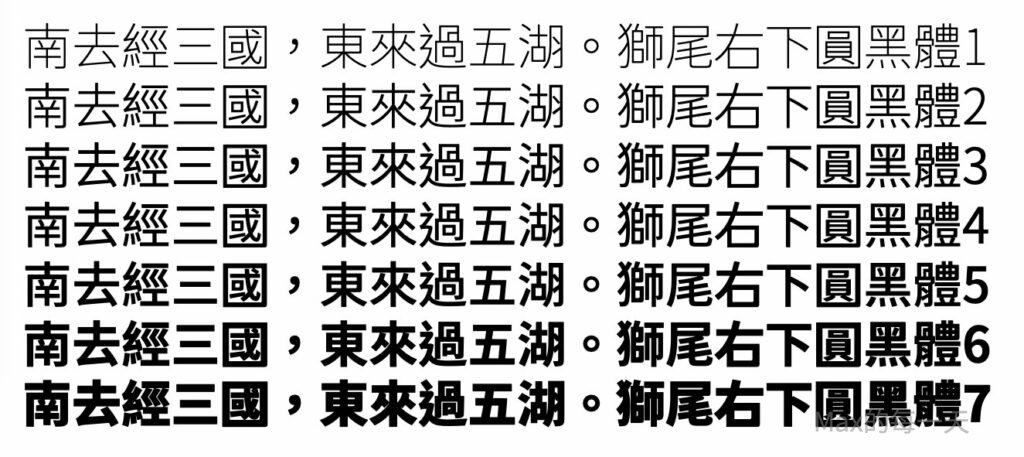 和思源黑體一樣,支援7種的字重:
