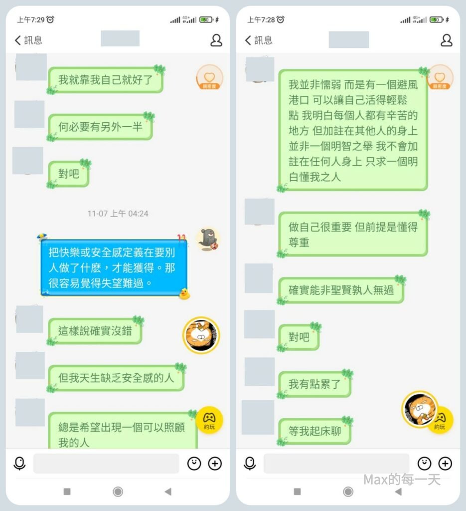 我傳訊給那個女孩,分享在女孩走後,其他在聊天室裡的人接續在討論什麼。