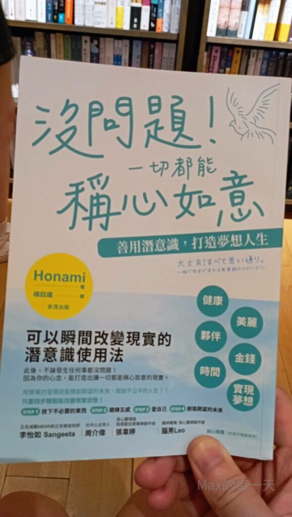 這本書的全名是《沒問題!一切都能稱心如意:善用潛意識,打造夢想人生》,含符號書名有25個字,真酷。這本書我沒有買,只有在誠本書局裡吹冷氣坐著看。附上線上書店博客來的購買傳送門: