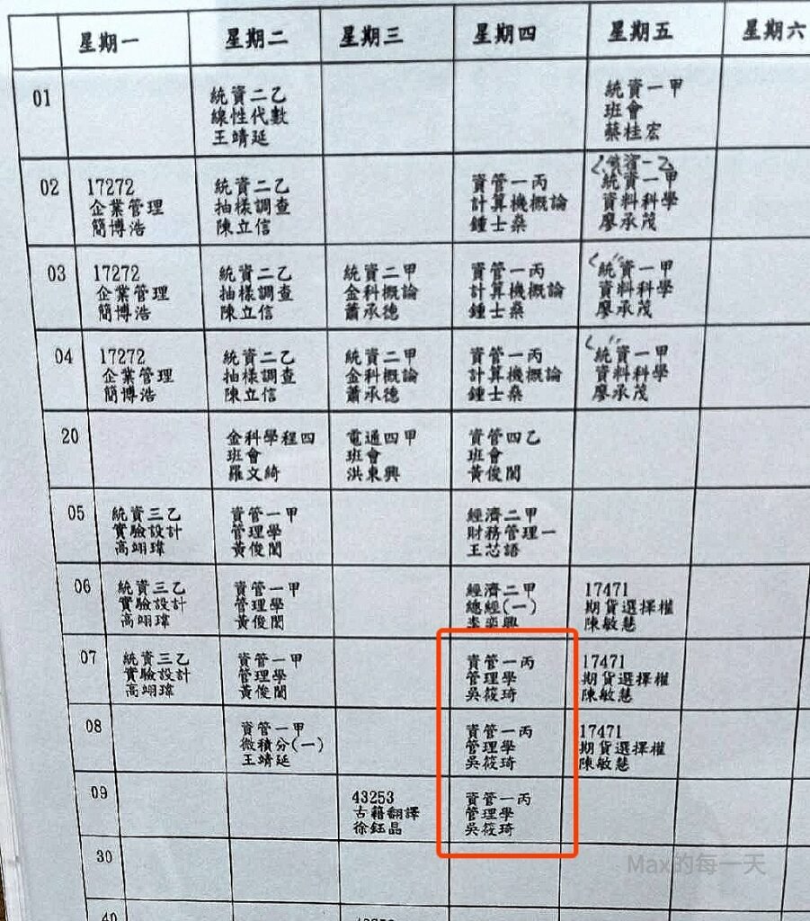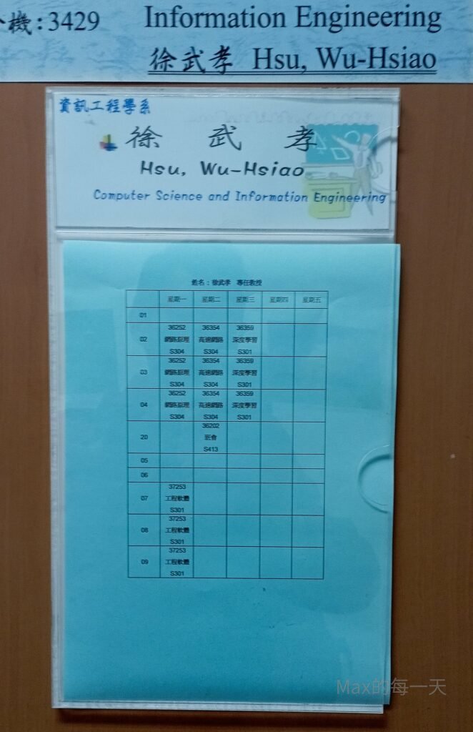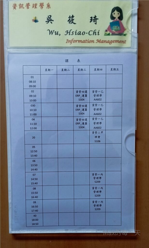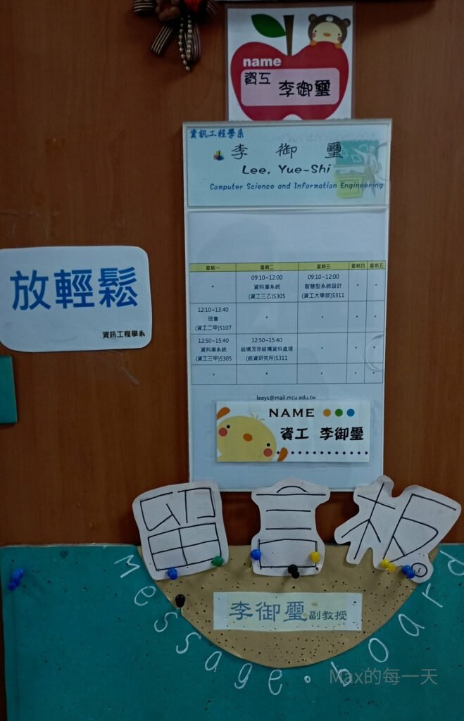 講到指導老師,Max 指導老師是李永山老師,這次去學校剛好在星期四的下午,星期四的晚上才有李永山老師的課,剛好沒有遇到李永山老師。
