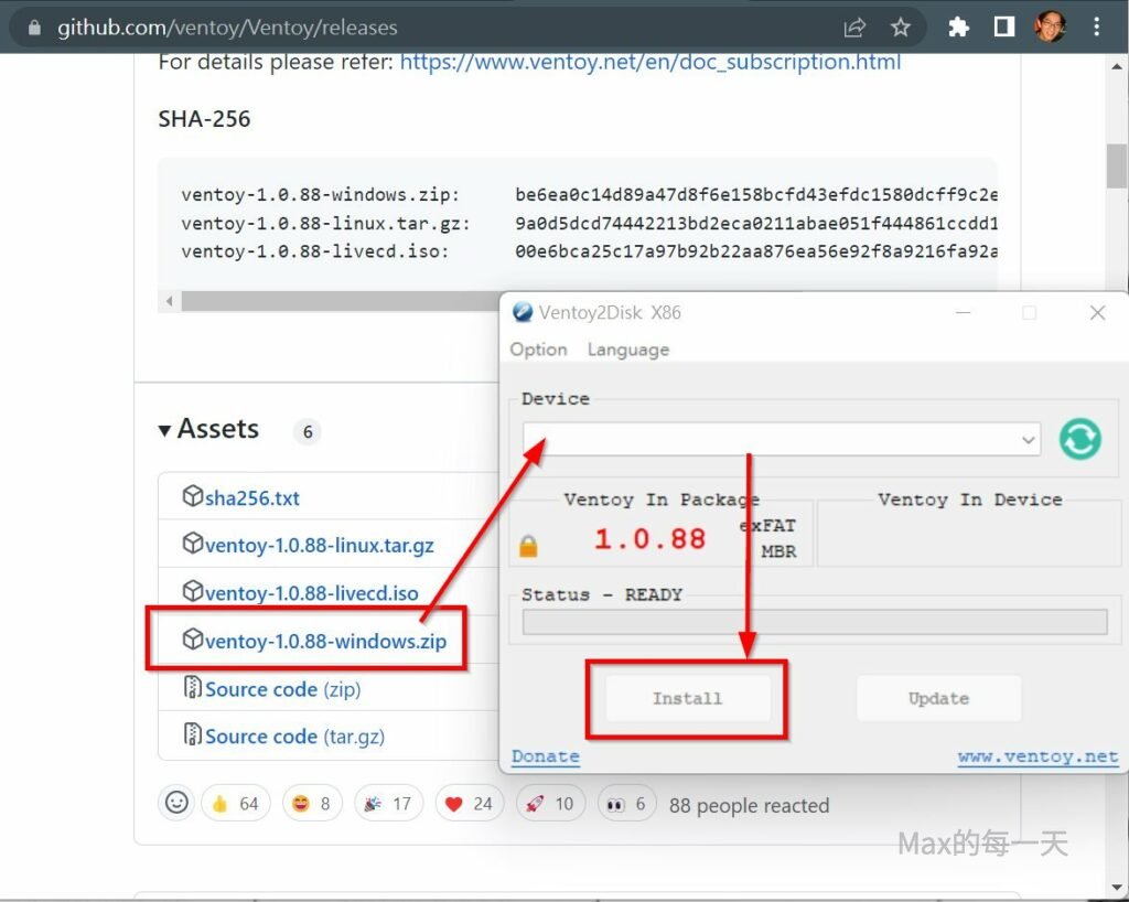 我先在我的 Windows 電腦安裝好 Ventoy, 下載網址: