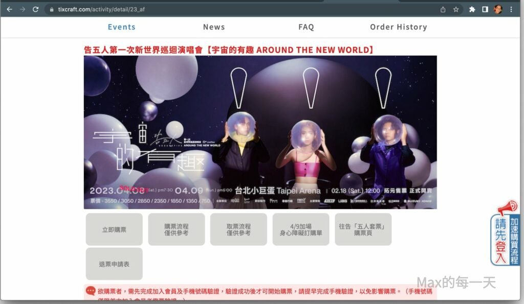 https://max-everyday.com/2023/02/common-problem-when-you-buy-ticket/ - 如何用虛擬主機搶拓元的門票