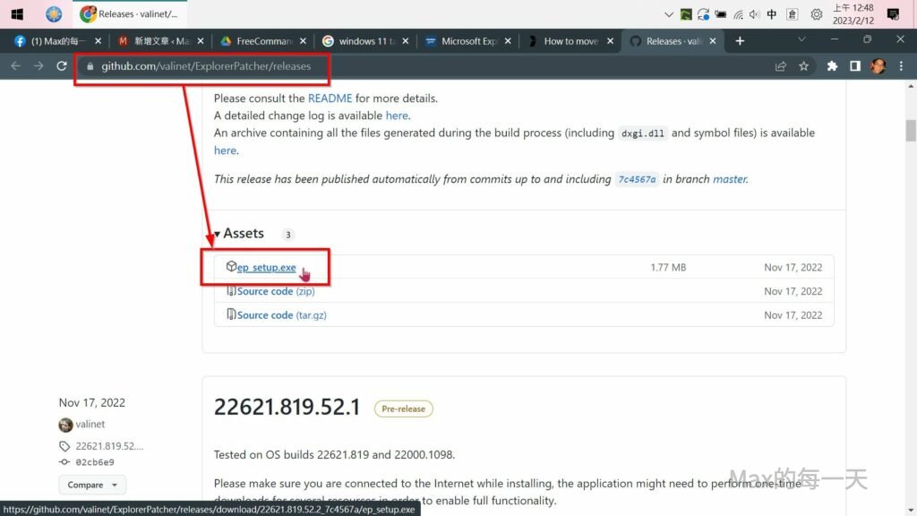 在使用過 Win10 與 Win11 之後, 覺得 Win11 的工作列比較胖, 有點佔畫面的可視空間, 平常時用瀏覽器上網時, 就覺得網頁可以看的空間少了一行. 而且 Win11 找不到可以切換或設定工作列到上方的功能. 針對這一個問題, Max 使用的解法是 ExplorerPatcher.