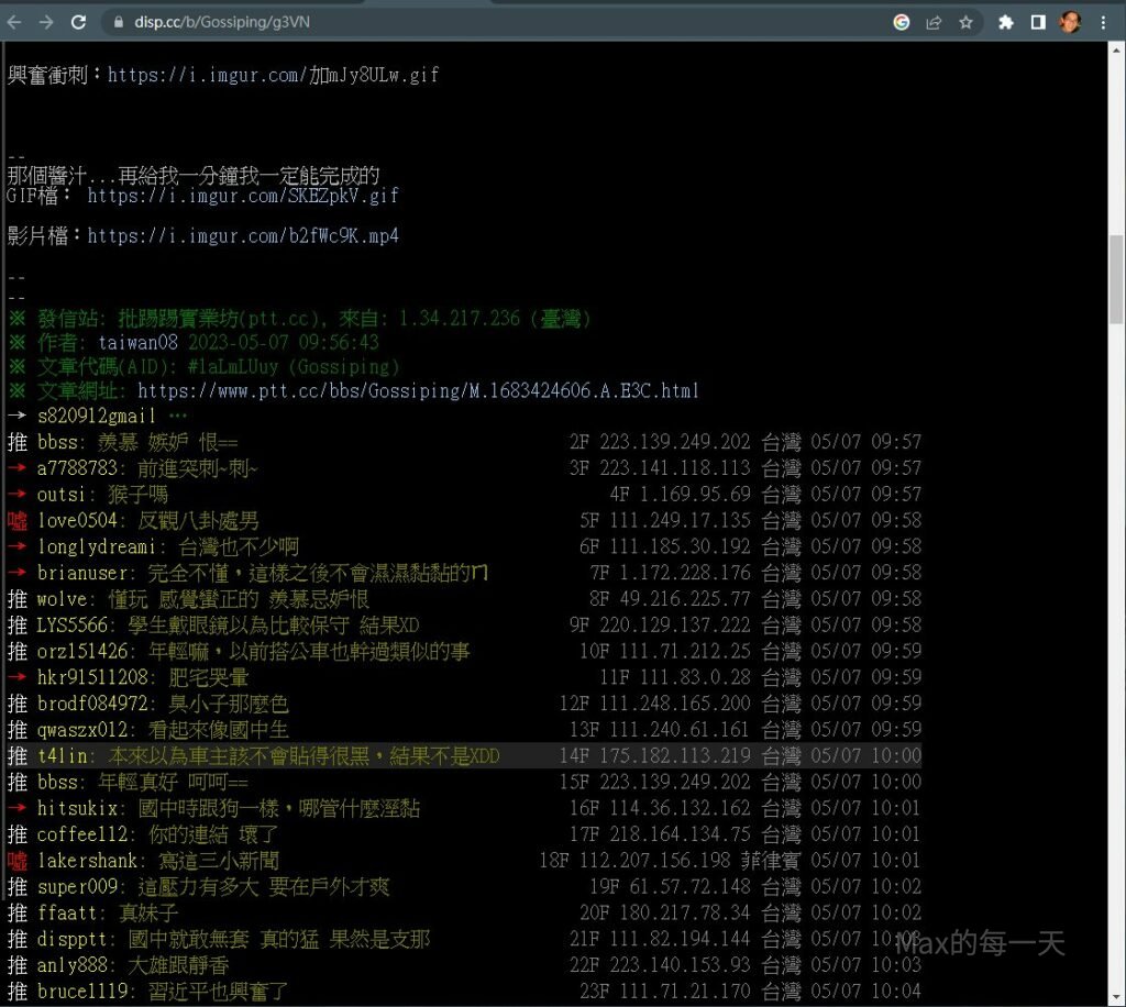 “興奮衝刺”影片的傳送門,只要把文章中的中文字”加”去除,就可以看到影片了,好酷的PTT:
