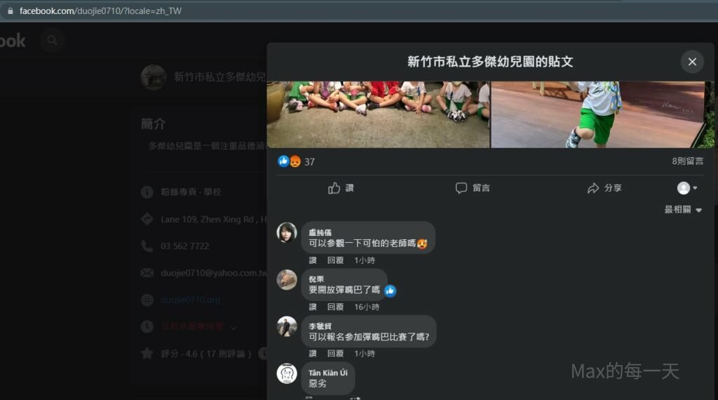 幼兒園的臉書立即有看了新聞的民眾去留言, 下面貼文是帶小朋友去”參觀眷村博物館。”