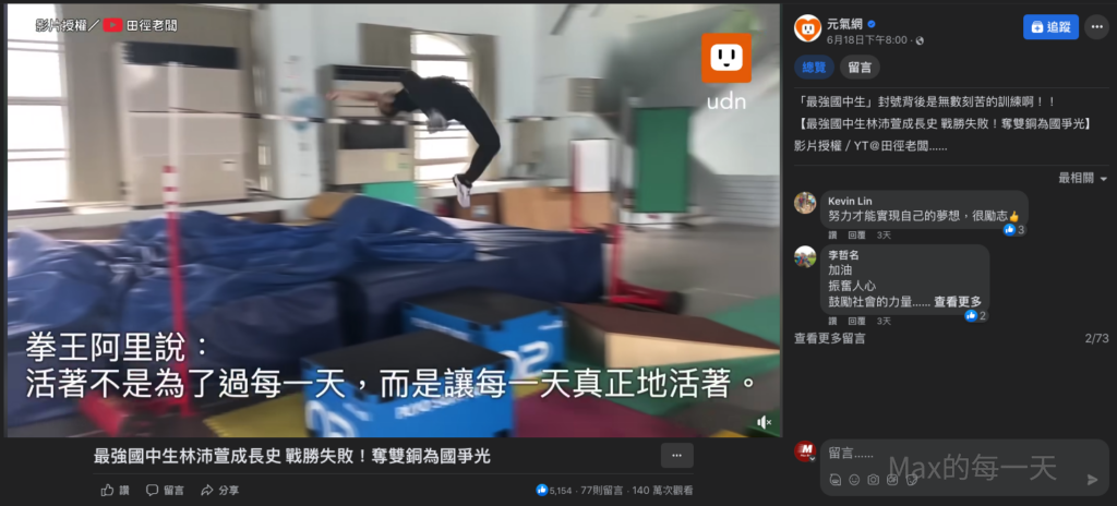 林沛萱的新聞,對我的分類是:看著有天份且對跳高有熱情的人,成功且光榮地打破了大會記錄,這樣子的新聞對我們的人生會有所幫助或鼓舞嗎?別人戰勝失敗,我們也要去戰勝嗎?