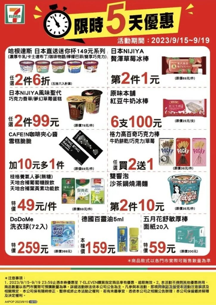 7-11 周末特價期間 2023-09-15 ~ 2023-09-19