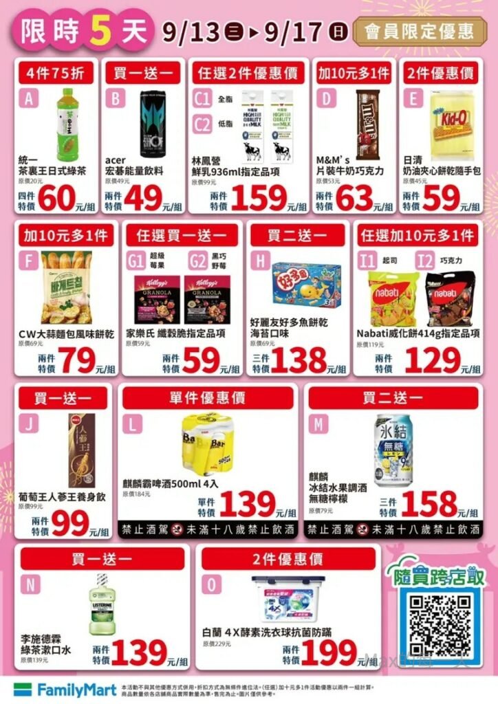 全家 周末特價期間 2023-09-15 ~ 2023-09-19