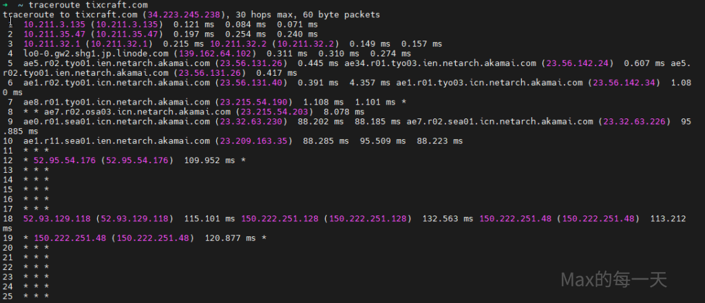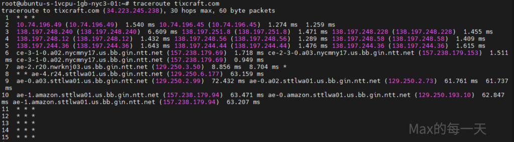 台灣的虛擬主機連到kktix 的速度(traceroute):