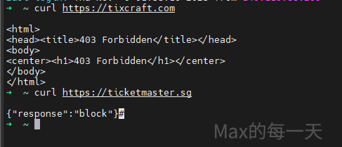 顯示 403 Forbidden 或是 {"response":"block"} 就是被擋掉了.