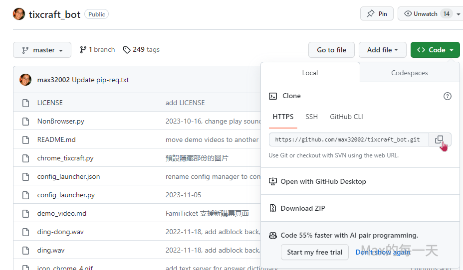 git clone https://github.com/bitties/tixcraft_bot_20241102