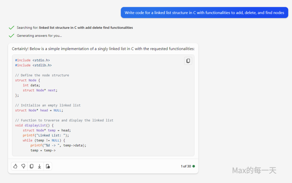 如果是問寫程式的問題, 實際 Copilot 回答的畫面: