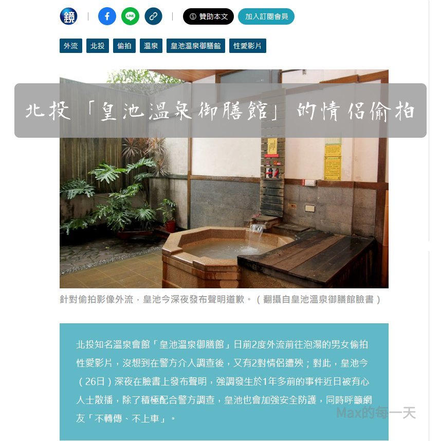 https://www.setn.com/News.aspx?NewsID=1443879 - 情侶泡湯片狂外流 皇池發聲明致歉!籲網友「不轉傳、不上車」