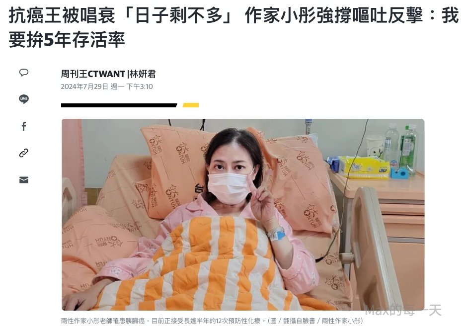抗癌王被唱衰「日子剩不多」 作家小彤強撐嘔吐反擊:我要拚5年存活率
