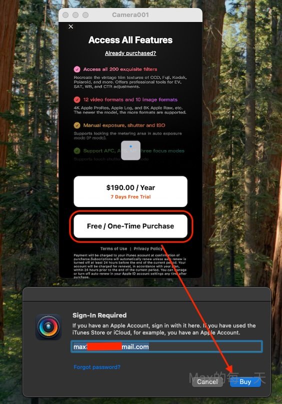 在 Facebook 上看到瘋先生分享Camera001 專業版限時免費,經測試在 macOS 的電腦上也可以取得專業版的限時免費了。