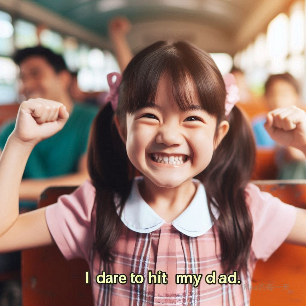 第三個女孩露出勝利的微笑:「我是說,現在。我敢打我爸耳光喔。」