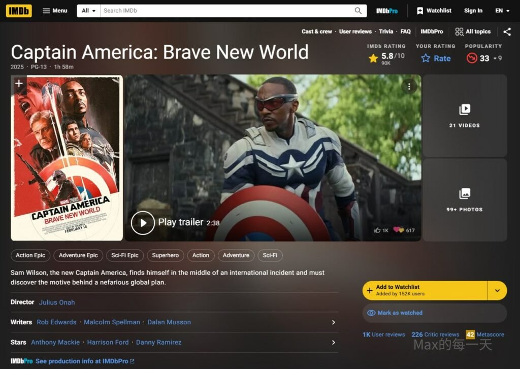 ◎譯 名 美國隊長4 / 美國隊長4:勇敢新世界(港) / 美國隊長:無畏新世界(臺) / 美國隊長4:新世界秩序 / 美隊4 / Captain America 4 / Captain America: New World Order