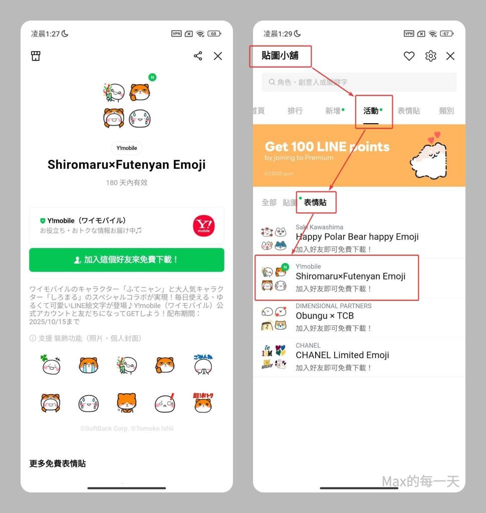 取得方式: 先解除LINE帳戶的手機門號綁定, VPN 到日本之後, 點「貼圖小舖」-「活動」-「表情貼」就可以取得了.