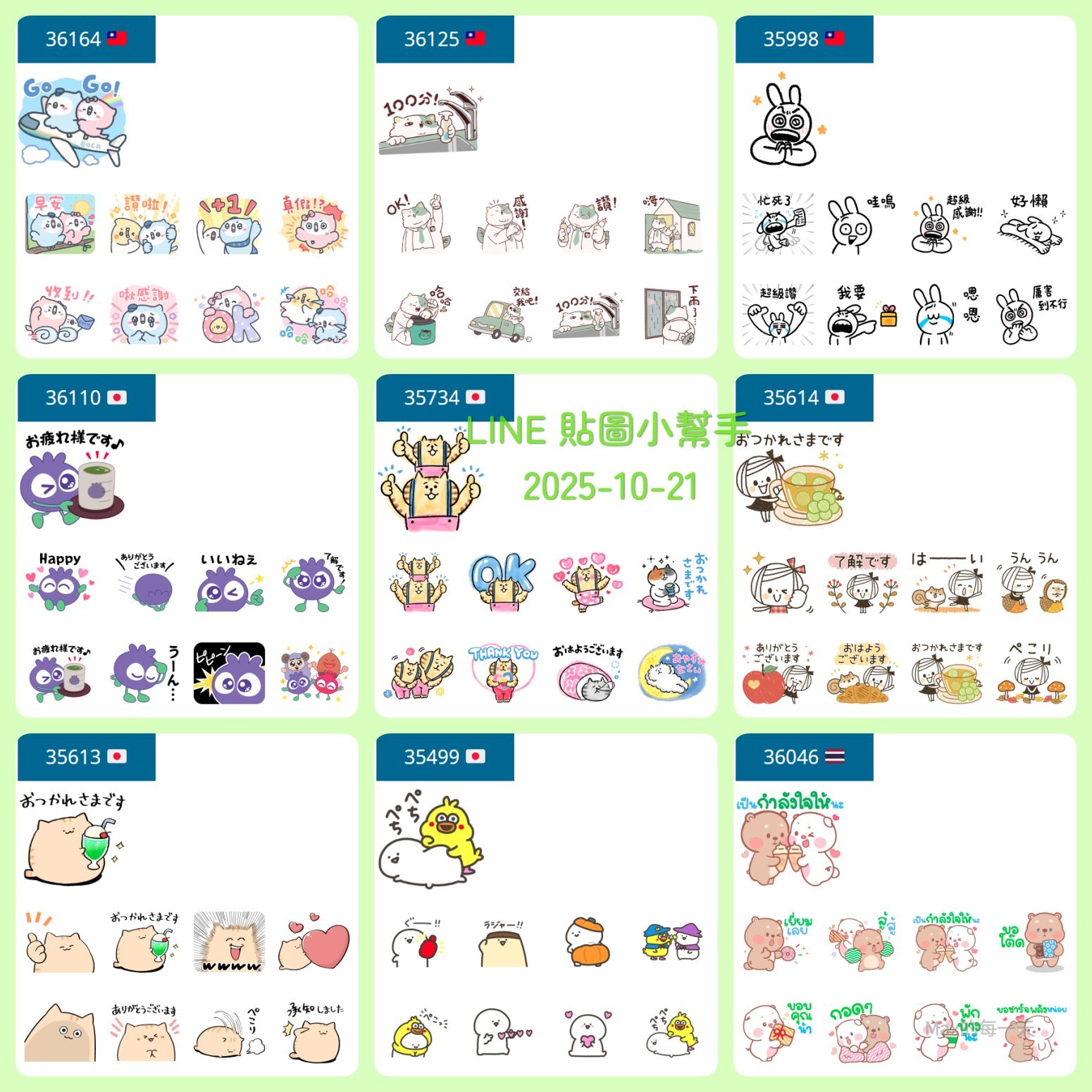 上一周的貼圖:LINE 免費貼圖 2025-10-14